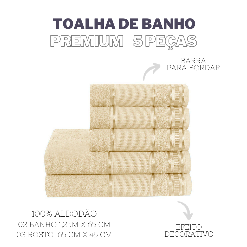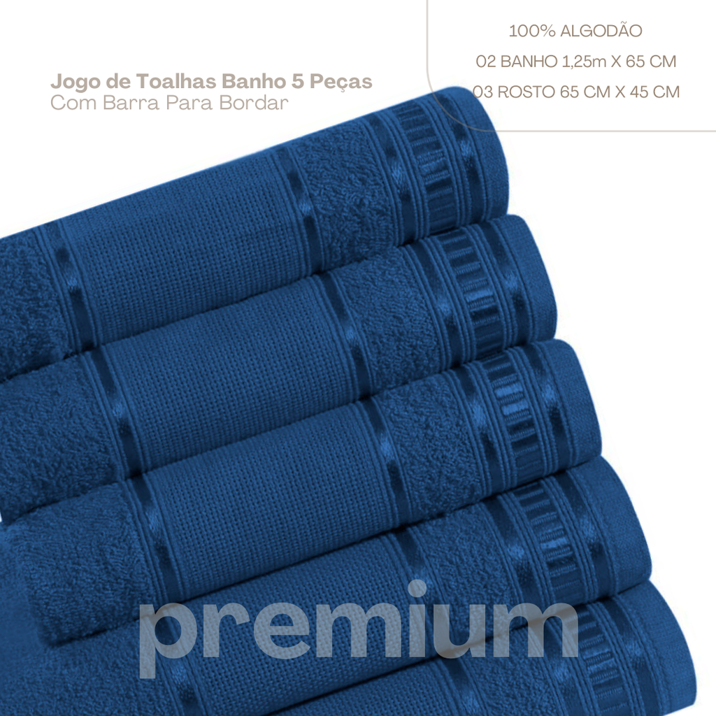 Jogo de Toalhas Premium 5 Peças – Banho e Rosto 100% Algodão